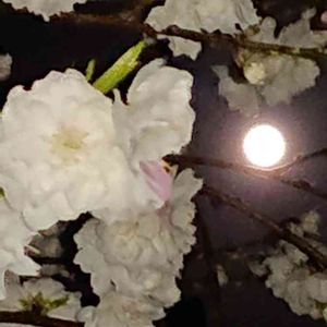 花桃の間からのスーパームーン✨🌸✨🌕️✨🌸✨