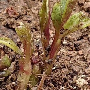 皇帝ダリア🌱✨ 去年、切り戻しした葉っぱを挿し木しといたら、10本のうち1本だけが1mくらいまで大きくなりました🌱⤴️ 去年は花が咲かないままに、冬に枯れてしまいました🌱⤵️ 他の子達は4月の中頃に新芽が出ましたが、こちらはなかなか出る様子は無いので、やっぱりダメだったのねと諦めていました。 今朝、パトロールしていて、1cmくらいの小さな小さな新芽が出ているのを発見しました✨🌱✨ 他の子達はもう1mくらいの大きさになってます🌱⤴️⤴️⤴️ さて、この子は今年はどのくらいに大きくなるのでしょうか😆🎵 そして、堂々とした花を咲かせて、皇帝ダリアの仲間入りできるのでしょうか⁉️