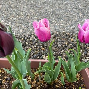 ママー、咲いてるよーッ❣️って大きな声で玄関に猛ダッシュして報告してくれたのにしっかり写すのは一日後の水やりタイムになりました🙌🏻春休み、毎日がすごい早さで過ぎていきます👀☀️ すみれちゃんのピンクチューリップが1番に咲いたね☺️