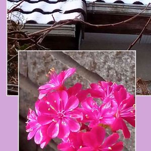 朝からちょっぴり🤏積もってます。 レウシア ほぼ満開です。