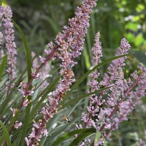 開花し始めたヤブランに ブ-ン……🐝🐝💙 アオスジコシブトハナバチ 青い筋模様と太っちょがカワ😊