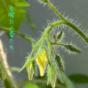 🌸yuyuさん主催🌼*・ 🏷金曜日の蕾たち📣大盛況ヾ(^。^)ノ 今週は熊本八代市のミニトマト🍅市販品 種だけを抜き取りメネデールに浸し 14粒植えたら全部元気に発芽😀🌱🌱 2本だけベランダ、残りは裏庭へ 現在まだ80cm、蕾が付き始めました。