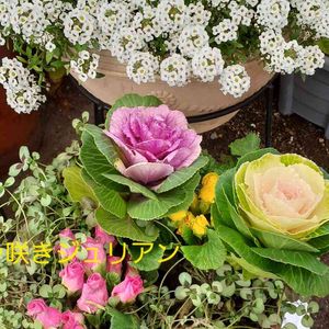 2021.12.12 晴れ☀️ [バラ咲きジュリアン・ミニハボタン・クローバー・アリッサム] まだ少し早いけど‥お正月の寄せ植えをしてみました🎵 アリッサムが、とっても可愛い~😃💕
