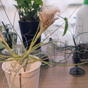 5年くらい前に咲いたエアプランツの花をほったらかしにしてたら、突然はじけました。タンポポみたいな綿毛のついた種が飛び散ってます。 どうしよう。実生できるのかな。そもそもどうすれば発芽するかも分からん。