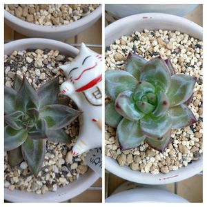 せっかくの休暇ですが天気が……😭 でも小雨の中、植え替えしました。 ポチッ多肉第2弾。 ロメオルビン×トリマネンシス トリマネンシスにロメオルビンの赤色が少し。ロメオ位に紅くなれば良いけどね〜 形はお気に入りです。😁 リリアン ロゼットが薔薇の花の様になるみたいですが、どうでしょう? これからの成長に期待してます😊 あと、2苗ポチッてますのでご紹介します しばしお待ちくださいませ😌