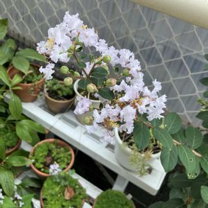 記録用 ①復活百日紅 ②アメリカンブルー ③日々草 ④ブーゲンビリア ⑤ハイビスカス ②〜⑤は冬越し達です