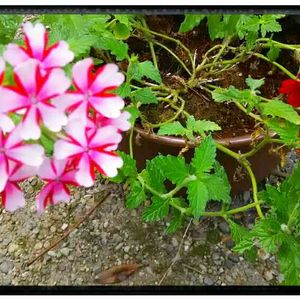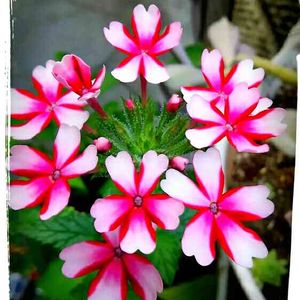 No 51 おはようございます(*^^*) この間枯れかけのバーベナを買って来て、やっと咲いた花ですが、なぜか赤のバーベナの花もさいてます。 一株なのに、2色の花が咲くなんて、ラッキー😆💕
