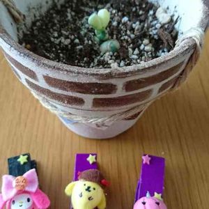 カラッカラに枯れて お花屋さんにもムリって言われたけど 水やったり歌ったり😁してたら 葉が出てきました🌿