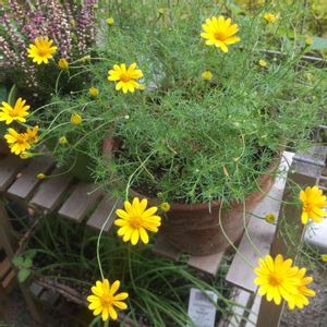 長雨で茶色〜くなったデージー 切り戻したら復活してくれてうれしいな♪ 水のやりすぎには気をつけます