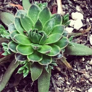 冬に落っことして葉がバラバラになってしまったかわいそうな霜の朝ちゃん。 なんかかわいい子が産まれてる…!また美しくなーれー💃 霜の朝はカンテと星美人の交配種だそうで…この子大好きです。