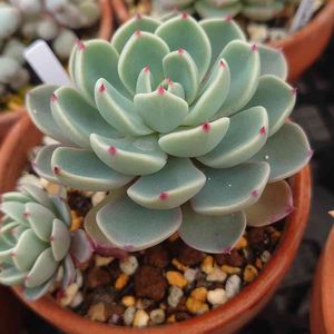 エケベリア_七福美尼🌱 (Watts ナナミニフック) 8月にお迎えした当時不細工ちゃんでどうなるのかと思ってたら、可愛くなってきたよ❣️ 天気が良いのでみんな外に出して日向ぼっこ☀️