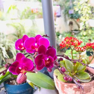 カランコエと胡蝶蘭💕花盛りです。蘭は、難しいかと思い、育てたことなかったけど、頂き、一年後も花が咲いたので嬉しかったです☺️