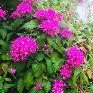 今朝の庭散策で、ペンタスがまんまるになってる〜😍 雨が降ったり止んだりです☔️ 今また晴れてる間に出てみようかな❓