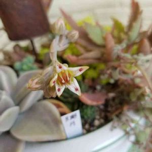 タニパト続けてたら、こちらも花芽らしきもの発見! 親株からたくさん出ている子株ちゃん達からチラホラ❤ 七福神に魅了されて1年と数ヶ月! 秋から冬に掛けて突然の雪にかやり傷んだ我が家の七福神。その七福神がなんとか越冬して春を迎えようとしてくれています(๑o̴̶̷̥᷅﹏o̴̶̷̥᷅๑) このまま頑張って成長していってね!!