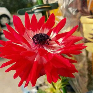 アネモネ🌼赤 いちばんに咲いた子です😺 夜になると花がとじるので、朝出勤して日が落ちる頃に帰宅の私は開いてるところがあまり見られない😝