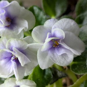 たくさん咲いてきた💞 写真だと分かりづらいですが、とても透明感のある白で、花びらの付け根あたりにうっすら青紫色が入るのも好きです。 蕾が上がり始めてから出てきた葉は、しっかり斑が入ってます。なんでだろ、不思議。 セントポーリア・アランズフォールンエンジェル。