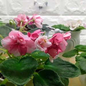 ピンクのセントポーリア 『RM - マジックチューリップ』 チューリップ咲きです😌 4、5枚目はセリアで買った貼り付ける蝶です✨