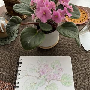 昨晩、どうも眠れなくて😅🥹 この前スケッチした セントポーリアの色塗りを夜中に🌟してみた〜 朝方眠れたけど… 今日は昼寝しました😪💤🤭😆
