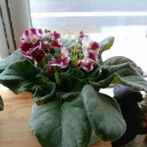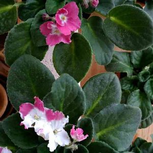 斑入りのセントポーリア✨ グリーンとピンクの花がかわいいです😊