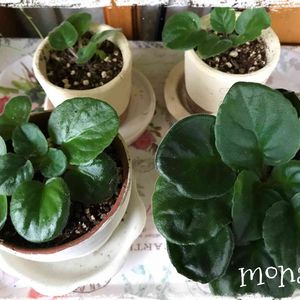 セントポーリア🌸 脇からどんどん子供が出て 姿が乱れたので切り取って水挿し🌱 発根したので土に植え替えました🎶 今のところ色つやもよく元気💕 花が咲いてくれるといいな🌸🌸 今までの自分ならこんなこと考えもしなかった💦 でもgsの影響でトライしてみた😊