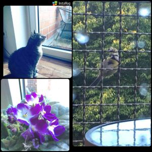 もう1つのセントポーリアが かなり咲いて来ました! 紫って綺麗だな(*´ω`*) うちの猫ちゃまは、鳥が怖いと 聞いていたのですが、歯をカチカチ 鳴らしていきなり窓に飛びつき... ずっと窓眺めております。笑 写真に撮れたこの鳥が最近よく ベランダに遊びにきます◡̈⃝*.♩ つがいで来てるけど、 何してるんだろう??