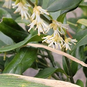サルココッカのちっちゃな白いお花がいつの間にか咲いていました(ღ˘⌣˘)♫ いつもお花を見逃していたから数年ぶりに見られて良かった〜♪