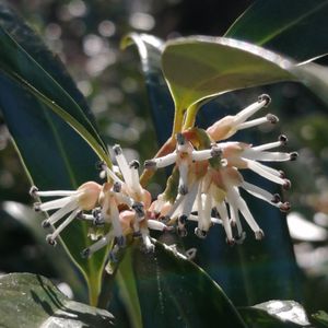 サルココッカ 昨年11月に赤い実を見つけて 名前を覚えたのですが、 今日は、花がたくさん咲いてました。