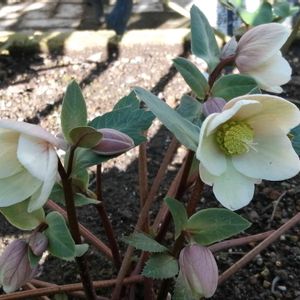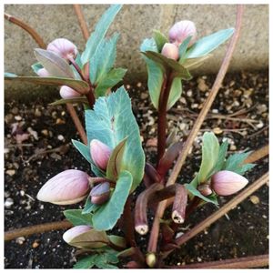 去年、処分品になってたクリスマスローズ ちゃんと植え替えしてお世話してたら恩返しかのように蕾を付けてくれてます