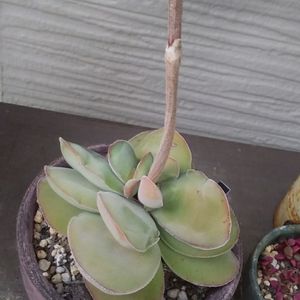 ティテュバンス錦って… 伸びやすくね?w 他のエケなら徒長しない場所(2階の窓の外の手すりに作った棚上段で、うちの環境で一番日当たり良い場所)なのに… なぁ〜ぜぇ〜!?www ■エケベリア属 白鳥 原種エボニー ロメオルビン ティテュバンス錦 黒爪ザラゴーサ ■クラッスラ属 デュピア