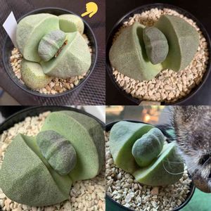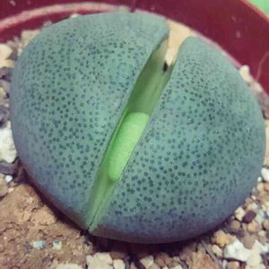 ~15年越しの恋心~ 『生ける宝石』の名に相応しいリトープス💎 一目惚れしたにもかかわらず、当時は殆どお目にかかることなく値段も張ったので『得たいの知れない小さな一粒にこの値段かぁ、、』と見送りを繰り返すこと15年(笑) しかし皆様の投稿等で生態を学ぶにつれ夢は広がり、、、 元気でリーズナブルなコチラをとうとう嫁入りさせました。 リトープス売場のポットの中で1番大きな品種のコチラ『帝玉』との名が✨ 栗ほどの大きさがあります。 それでも小さく収まるのでコレクションするのにピッタリ。流行りの『リトープス丼』(宝石箱)を作るのが夢🍀