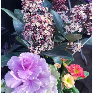 おはようございます 昨日の雷雨すごかったですね 今日は朝から青空☀️ 気温もグッとあがるようです お正月の寄せ植えのスキミヤ 小さな花がいっぱい咲いてます🌸 今日も素敵な一日をお過ごしくださいね♥️