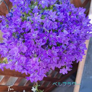少し前からやっとの事 ベランダに出せたベルフラワーꕤ.·*. 元気に咲いてきた〜!!かわいい >ᴗ<♪