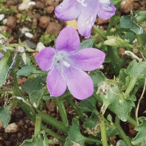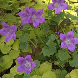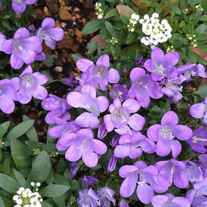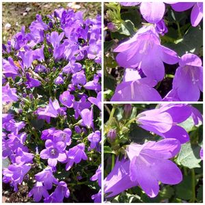 ベルフラワー 昨年寄植えにしたベルフラワー✿❀ダメ元で地植えに、花が咲いてました。冬越できました。