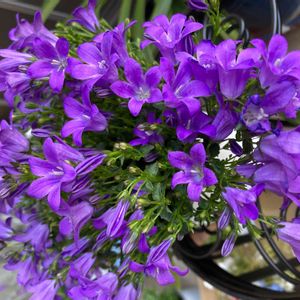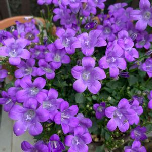 今日のお花オトメギキョウ🌸 ベルフラワーの名前で見かけることが多いかな。 写真は今年6月30日、満開です😊 春先に購入して今年で6年目。毎年小さいながら綺麗な花を咲かせています。