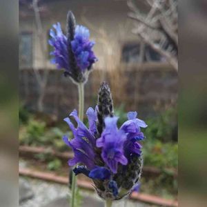 寄せ植えの中のラベンダー 風が強くて揺れる~~😟 今日から2月 どの花も暖かい風に揺れています🤗 青い花マニアの末端に……