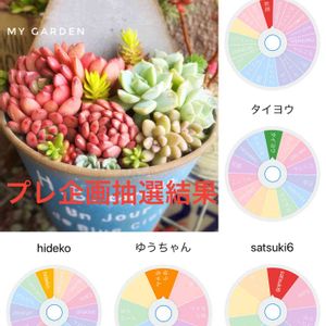 おはようございます。 プレゼント企画の抽選結果です。 ルーレットアプリで抽選しました。 ゆうちゃん hidekoちゃん satuki6ちゃん タイヨウちゃん お豆ちゃん 以上5名様おめでとうございます。 後ほど過去ピックにコメント入れますので少々お待ちください。 外れちゃった方々ごめんなさい。 お付き合い下さりありがとうございました。