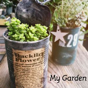 こんちわ〜♪( ´▽`) 毎日暑いです😵💦 男前系リメ缶に小米星。 多肉の読みがなって難しい〜😅 「こまいぼし」って読むんですね。 小さな星が可愛い💕 最近クラッスラがお気に入り(*´꒳`*)