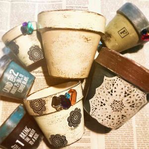 おはようございます♪( ´▽`) 昨日休みだったので、 久しぶりにリメ鉢作ってみました。 レースペーバーをデコパージュしたり、 ビジューをグルーガンで付けたり 初めての試みなので何とも……。 まだまだ改善の余地ありかな。