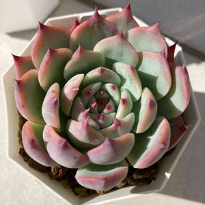 うちの色白美人4姉妹(笑) ラウリンゼ鉢上げしたほうがよさそう 月影は最近ちょっと色づいた気がする アイスグリーンとアルバビューティはメルカリ産。顔がいい😍