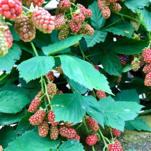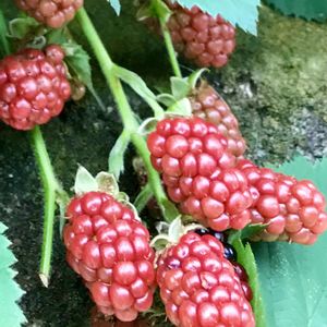 お隣さんのフェンスいっぱいの ブラックベリー 春には可愛いピンクの🌸花を楽しませてもらいましたが 今は実がぎっしり 日に日に色が濃くなってきました^_^