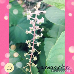 お隣さんに ヤマゴボウの花 ほんのりかわいい色合いと小さな花が可愛い😍