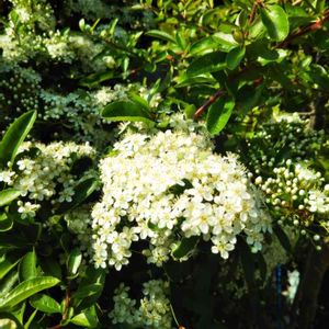 お隣の植木🌲ですが レッドロビンに 沢山小花が咲いてます💕 白いコデマリの様なお花 可愛いです😍