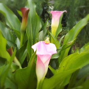 お隣の98歳の元気なおじいちゃんが育てているピンクのカラー。カエルさんが遊びに来ていますが、中の方にグロテスクなアレがいました。たぶんアゲハの幼虫です。綺麗なカラーの葉が食べられていたので教えてあげたけど、ちゃんと何かしらしてくれたかな〜 すぐ側に私のミカンとレモンの木があるので、要注意⚠️だね!去年は山椒の葉を全部食べられて、枝だけになりました🤣
