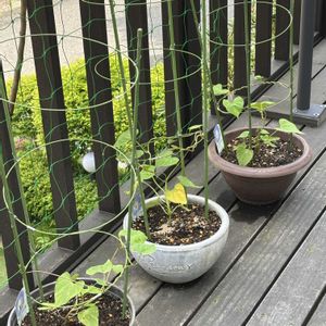 こんばんは🌆 今日もお疲れ様です。 今年も植えました。 ①②西洋朝顔ヘブンリープルー ③小さな絞り模様の朝顔の目が出ました。 ④夕方の富士山、黄砂?霞んでいました。 おやすみなさい😴