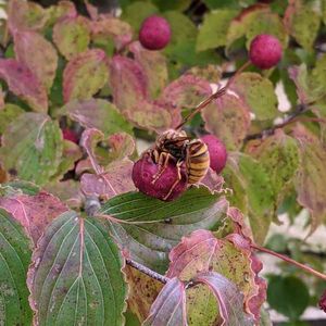 スズメバチが、食事中 冬眠の準備かな☺
