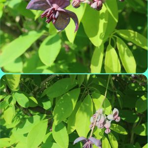 4/22 角田山 アケビの花は面白い形なので、見つければ撮ります。ミツバにゴヨウは、三葉に五葉なのは覚えているけど、交雑種も有ったよナ〜。 ✌️✌️✌️😃😃😃✌️✌️✌️ 広義アケビ(木通、通草)アケビ科アケビ属蔓性落葉低木の総称。 狭義アケビは五葉で全縁。 ミツバアケビは三葉で波状に鋸歯有り。 ゴヨウアケビはアケビとミツバアケビの自然交雑種で、五葉で波状に鋸歯有り、但し三葉も有り。 なるほど、しばらくは覚えているだろうけど、来年はチョットわからね〜ぇナ。何回も調べて、そのたびに忘れてます。 ✌️✌️✌️😃😃😃✌️✌️✌️ 写真の娘は狭義アケビですネ。果実は秋の恵みです。