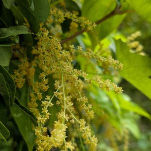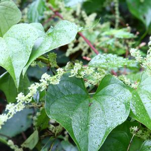 零余子栽培してます 一部訂正、山の芋栽培でした 零余子を食べるための山の芋栽培であることは間違いなし 面長ハートの葉っぱや粒々の花、油紙貼った軍配を重ね合わせたような実も好きであることも間違いなし! 地下の芋のことはここでは考えないよ
