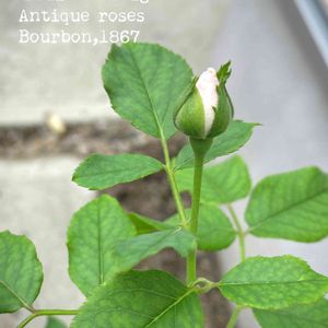 ブールドゥネージュ 今年お迎えした大苗♪ シュートをどんどん上に伸ばしてます💧 その先にひとつ蕾をつけました😊 今年2個目のお花🌹 ちゃんと咲いてくれますように…♪ 🏷金曜日の蕾たちに参加させてくださいませ♪