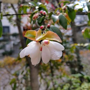 薄曇りのお天気🌥️でした。琉球椿lutchensis(沖縄椿)が、咲き出しました。葉は、山茶花を゙小さくしたようで、お茶の花より小さく咲きますが芳香豊かです。シンビジュウムも咲き出しました。 クリスマスロ―ズも咲いてます。