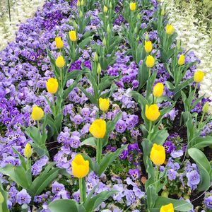先月25日に撮っていた植物園花壇💛💜🤍🌿🌷 まだ咲いてなかったチューリップ🌷も咲き揃い外枠の葉牡丹も伸び切りモリモリで〜す